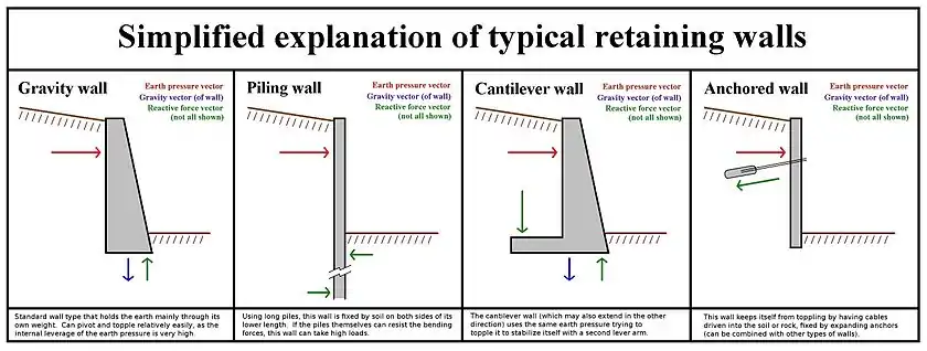 - مشارکتکنندگان ویکیپدیا. «Retaining wall». در دانشنامهٔ ویکیپدیای انگلیسی، بازبینیشده در ۶ سپتامبر ۲۰۱۵.