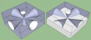 اگر زاویه برخورد به اندازه کافی کم باشد و کریستال به اندازه کافی شفاف باشد تا بازتابش فوتون را جذب نکند، بازتابهای داخلی میتوانند از درون وجههای بلوری دیگر خارج شوند. اما برای یک LED مربع ساده با سطوح زاویهدار ۹۰ درجه در همه طرف، همه وجوه مانند آینه عمل میکنند. در این حالت، بیشتر نور نمیتواند فرار کند و به صورت اتلاف گرما در کریستال از بین میرود.[73]