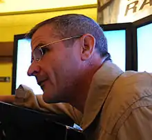 ![]() دیوید کولی در حال تشریح نحوه کارکرد شبیهساز اف-۲۲ (تصویر از نیروی هوایی ایالات متحده) | |