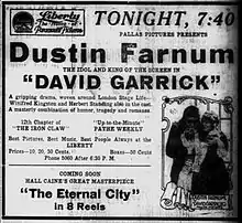 - مشارکتکنندگان ویکیپدیا. «David Garrick (1916 film)». در دانشنامهٔ ویکیپدیای انگلیسی، بازبینیشده در ۱۱ ژوئن ۲۰۱۵.