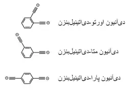 | نام رایج | دیآنیون اورتو-دیاتینیلبنزن | دیآنیون متا-دیاتینیلبنزن | دیآنیون پارا-دیاتینیلبنزن |