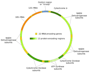به نظر میرسد DNA میتوکندریایی و هسته دارای ویژگیهای تکاملی متفاوتی باشند. mtDNAها از ژنومهای حلقوی باکتریهایی که توسط اجداد اولیهٔ سلولهای یوکاریوتی امروزی در بر گرفته شدهاند مشتق شدهاند. این نظریه به نظریهٔ اندوسیمبیوتیک (endosymbiotic theory) معروف است. بهطور تقریبی هر میتوکندری شامل ۲–۱۰ کپی از mtDNA میباشد.[3] در سلولهای ارگانیسمهای موجود اکثریت بسیار بزرگی از پروتئینهای موجود در میتوکندری به وسیلهٔ DNA هسته کد میشوند اما تصور میشود ژنهای برخی از آنها دارای ریشهٔ باکتریایی هستند که در طی تکامل به سلولهای یوکاریوتی منتقل شدهاند.