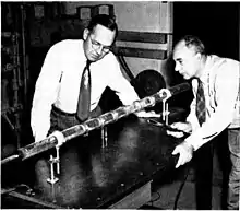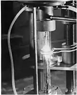 (راست) پالایش ناحیهای عمودی، ۱۹۶۱. سیم پیچ گرمایش القایی بخشی از شمش فلزی در لوله را ذوب میکند. سیم پیچ به آرامی به پایین لوله حرکت میکند و ناحیه مذابی را به انتهای شمش منتقل میکند.