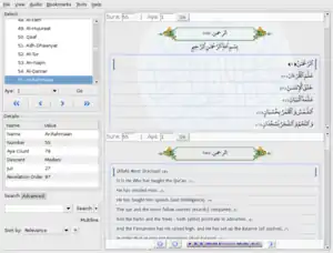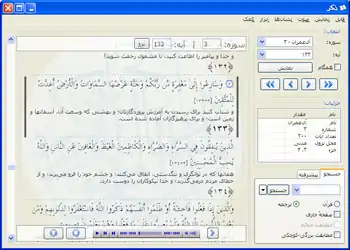 این نرمافزار، امکان جستجو در متن قرآن (با و بدون مطابقت علائم) یا متن ترجمهها را در اختیار کاربر قرار میدهد. به علاوه کاربران میتوانند از امکانات جستجوی پیشرفته در متن قرآن بهره ببرند. جستجوی پیشرفته به کاربران امکان پرسوجوهای پیچیده با استفاده از عبارتهای منطقی (AND, OR و NOT)، و همچنین جستجوی کلمات شبیه را میدهد. به علاوه میتوان دامنهٔ جستجوی خود را به یک یا چندین سوره (و یا حتی قسمتی از آنها) محدود کرد.