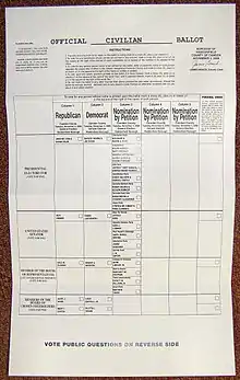 برگه رای غیابی در سیستم انتخاباتی آمریکا برای افرادی است که مایل هستند رای خود را بهطور غیابی بفرستند.
