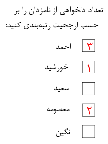 | رأیدهنده | ترجیح اول | ترجیح دوم | ترجیح سوم | ترجیح چهارم |