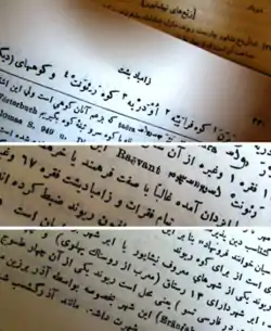 - رستم شهزادی (١٣٨٦)، واژهنامه پازند، تهران: موسسه فرهنگی-انتشاراتی فروهر، ص. ص۸