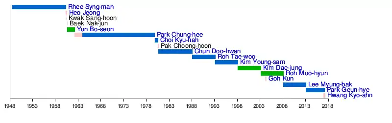 | در ویکیانبار پروندههایی دربارهٔ رئیسجمهور کره جنوبی موجود است. |