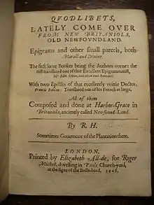 صفحه عنوان یکی از کتابهای رابرت هیمن به نام Quodlibets یا نکات قابل توجه