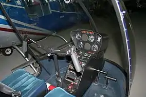 در بروزرسانیهای جدید، اهرم جداسازی موتور از پروانه، گاورنر موتور و باک بنزین زاپاس نیز به مدلهای جدید این بالگرد اضافه شدهاست. برخلاف بالگردهای دیگر که دو عدد سکان در بین دوپای خلبانان نصب میشود، در بالگرد آر-۲۲ تنها یک سکان در وسط کابین نصب شده که بین دو خلبان مشترک است. این سکان که شبیه حرف «تی» انگلیسی است، به وسیلهٔ یک میلهٔ افقی بین دو خلبان به اشتراک گذاشته شدهاست. نقطه ضعف چنین سکانی این است که در صورت خراب شدن آن، هردو دستگیره سایکلیک از کار خواهند افتاد.[8]