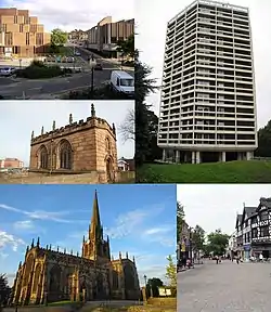 ![]() From top to bottom: Rotherham town centre, Rotherham Minster, Beeversleigh flats in Clifton, All Saints Square. | |