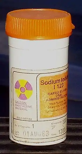 | 123I | یدید سدیم | تشخیص کار تیروئید، عکسبرداری تیروئید |