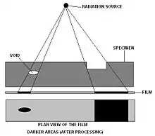 آزمون رادیوگرافی به استفاده از امواج گاما و ایکس، که قابلیت نفوذ در بسیاری از مواد را دارا میباشند، برای بررسی مواد و تشخیص عیوب محصولات گفته میشود. در این روش اشعه ایکس یا رادیواکتیو به سمت قطعه هدایت میشود و پس از عبور از قطعه بر روی فیلم منعکس میشود. ضخامت و مشخصههای داخلی باعث میشوند نقاطی در فیلم تاریکتر یا روشنتر دیده شوند.