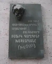 Memorial Plaque: Rafik Garegin Khachatryan (Khachar). Yerevan city, Armenia.