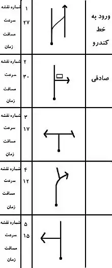 - ب: جهت وسمت حرکت درتقاطع که با یک فلش نشان داده میشود.