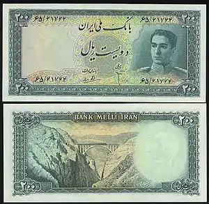 دویست ریالی - پشت اسکناس تصویر راه آهن شمال - پل ورسک