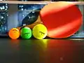 راکت تنیس روی میز با سه اندازهٔ مختلف از توپهای سلولویدی