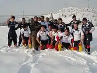 بازیکنان یک تیم راگبی در برف