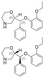 ![]() (R,R)-(–)-reboxetine (top), (S,S)-(+)-reboxetine (bottom) | |