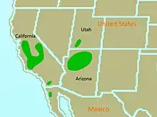 | گستره پراکندگی رخکرکس کالیفرنیا (رنگ سبز) | |
