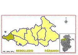 ![]() Municipal location of Rebolledo de la Torre in the Páramos comarca | |