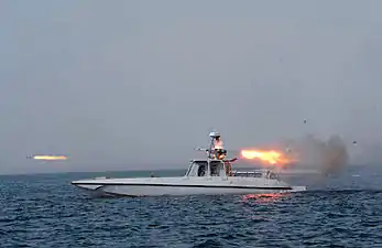 قایق کوچک موشک انداز در رزمایش مدافعان ولایت ۹۰.