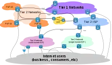 همانطور که مشتریان اینترنت هزینه اینترنت را به ISP ها پرداخت می کنند ، ISP ها نیز باید هزینه به ISP بالادستی برای دسترسی به اینترنت پرداخت کنند. یک ISP بالادست معمولاً دارای شبکه بزرگتری نسبت به ISP پایین تر دارد یا قادر است دسترسی ISP پایین تر (که با ISP بالا قرارداد دارد) را به قسمتهایی از اینترنت فراهم کند که ISP طرف قرارداد به خودی خود نمی تواند به آن قسمت ها دسترسی داشته باشد. [11]