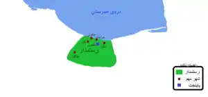 حمدالله مستوفی نوشته است «رستمدار ولایتی است قریب به سیصد پاره ده که از توابع آن است و هوایش به گرمی مایل است و بیشتر ولایات را آبش از شاهرود شهر است.[6]