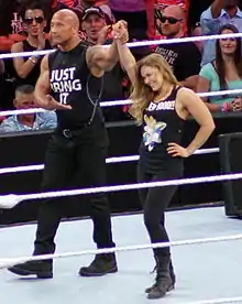 سپس تریپل اچ و استفنی مکماهون (رووسا) وارد رینگ شدند تا از رکوردشکنی در ورزشگاه Levi’s با جمعیت ۷۶۹۷۶ نفر خبر دهند و از موفقیتهای خودشان و پیروزی اچ بر استینگ صحبت کنند که ناگهان د راک وارد شد. او به رینگ آمد و بعد از کمی صحبت بین راک و آن دو علیه هم، استفنی یک سیلی به صورت راک زد و کنایهوار گفت که او یک زن را نمیزند (چرا که راک قبلاً به استفنی راک بارم زده بود). راک هم این کار را نکرد ولی در عوض سراغ راندا رَوزی قهرمان وزن ۶۱ کیلوگرم یوافسی رفت که در ردیف تماشاگران کنار رینگ نظارهگر رویداد بود و او را به رینگ آورد. راندا گفت که «هر رینگی که او در آن قدم بگذارد مال اوست»؛ سپس راک به تریپل اچ حمله کرد و راندا تریپل اچ را از رینگ به بیرون پرت کرد و بعد از آن هم استفنی را با یک حرکت بازوقفل(Armbar) شکنجه کرد و سپس او را هم به بیرون انداخت.
