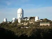 <!Two of Kitt Peak's telescopes (right: Mayall 4-m telescope; left: Bok 2.3-m telescope)>
