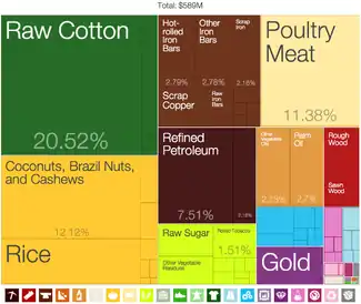 نمونه مصورسازی رصدخانه؛ نمودار صادرات کشور بنین بر اساس دستهبندی محصولات، ۲۰۰۹