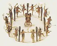 رفتاری جمعی و گروهی است که معمولاً ریشههای عمیق تاریخی دارد. رقص آئینی با پیگیری یک هدف جمعی، بهطور مثال مانند شکرگزاری، جشن و سرور پیرامون موضوعی خاص مانند برداشت محصولات کشاورزی، ابراز شجاعت و غیره برگزار میشود: