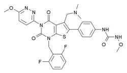 | 1-[4-[1-[(2,6-difluorophenyl)methyl]-5-[(dimethylamino)methyl]-3-(6-methoxypyridazin-3-yl)-2,4-dioxothieno[2,3-d]pyrimidin-6-yl]phenyl]-3-methoxyurea | |