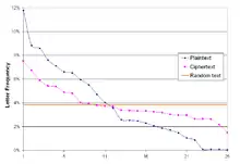 تا ، فرکانس تکرار حرف مشاهده شده در متن رمز شدهاست.