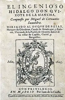 ![]() تصویر چاپ نخستِ بخش اولِ کتاب، چاپ ۱۶۰۵ میلادی