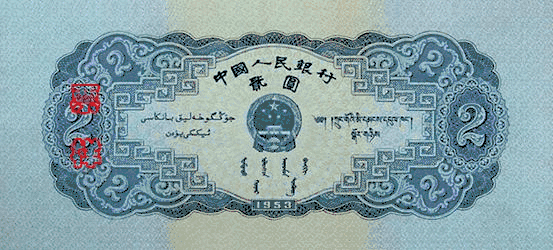 سری دوم اسکناسهای رنمینبی که از سال ۱۹۵۵ رایج شدند نام جمهوری خلق چین را به زبانهای ایغوری و تبتی و مغولی نوشته شده بود. این روش از آن دوره تا به حال ادامه داشتهاست.