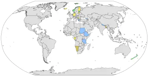 {{زیرنویس نقشه|#FFC0CB|متصدی head of state or government of a constituent country {{زیرنویس نقشه|#DCDCDC|Former head of state or government of a constituent country This list includes heads of state or government that were elected by a governing committee or parliament, in the case of states that do not have direct democratic elections, but not those appointed by a monarch.