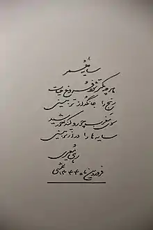 | نه دل مفتون دلبندی، نه جان مدهوش دلخواهی | نه بر مژگان من اشکی، نه بر لبهای من آهی | |