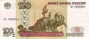 | р۱۰۰ | قهوه ای، سبز، کبود | ارابه در سردر تالار بولشوی در مسکو | تالار بولشوی | ||||||