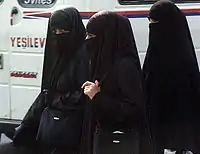 - سلفی: علمای سلفی، به استثناء شیخ ناصرالدین الآلبانی، پوشاندن چهره را واجب میدانند.[11]