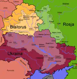 ![]() Sluch River (shown crossing light purple region) | |
