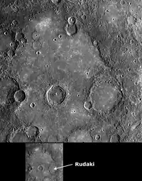 - مشارکتکنندگان ویکیپدیا. «Rudaki (crater)». در دانشنامهٔ ویکیپدیای انگلیسی، بازبینیشده در ۶ مارس ۲۰۱۶.
