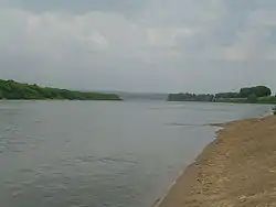 ![]() رودخانه اوکا در بین شهرهای سرپوخوف و کاشیرا در استان مسکو. پهنای رودخانه در این قسمت بالغ بر ۲۰۰ متر است. | |