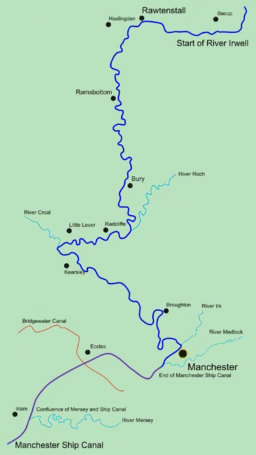 این رود که از شهرستان لانکاشر سرچشمه میگیرد پس از طی ۶۳ کیلومتر در کانال کشتیرانی منچستر در سالفورد، منچستر بزرگ به پایان میرسد.
