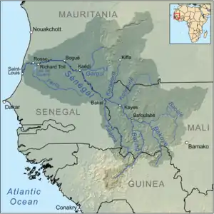 ![]() Fishermen on the bank of the Senegal River estuary at the outskirts of سنلوئی (سنگال) | |