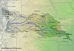 ![]() Map of the Arkansas River basin with the Cimarron River highlighted.
