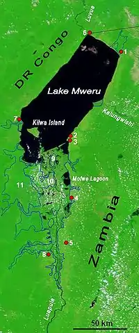 بیشتر درازای این رودخانه مرز میان زامبیا و جمهوری دموکراتیک کنگو را تشکیل میدهد.