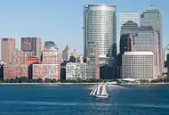 یک قایق بادبانی در رودخانه هادسون در نزدیکی منهتن جنوبی