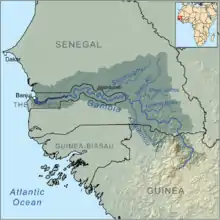 - "Gambia River." Encyclopædia Britannica. Encyclopædia Britannica Online. Encyclopædia Britannica, 2011. Web. بازدید در تاریخ ۳ مه ۲۰۱۱