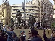 دو روز پس از استعفاء مبارک، در روز ۱۳ فوریه ۲۰۱۱ دولت نظامی (موقت) اعلام کرد تا برگزاری انتخابات مجلس و ریاست جمهوری که در شش ماه دیگر انتخاب میشود بر سر قدرت خواهند ماند. کابینه ارتشی مصر نیز مجلس را منحل اعلام کرد.[59]